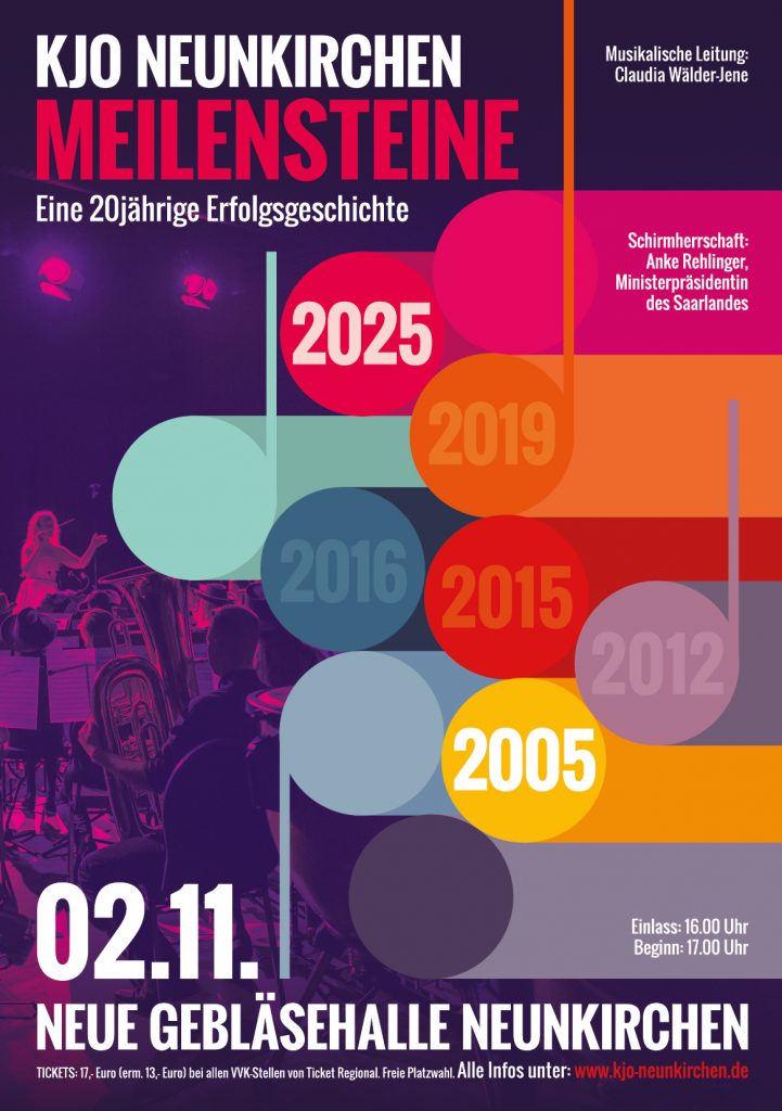 Das KJO Neunkirchen erlebte einen wahrhaft rasanten Aufschwung seit Claudia Wälder-Jene im Jahr 2009 die musikalischen Zügel als Dirigentin in die Hand nahm. Gemäß dem Motto „Großes entsteht im Kleinen“ entwickelte sich aus einem zunächst recht kleinen Ensemble ein inzwischen über 60 MusikerInnen starker Klangkörper. Gemeinsam hat sich das Orchester ein beachtliches Repertoire quer durch die Rock-, Pop-, Film- sowie sinfonische Blasmusik erarbeitet und sich damit einen festen Platz im Musikleben des Saarlandes und darüber hinaus geschaffen.